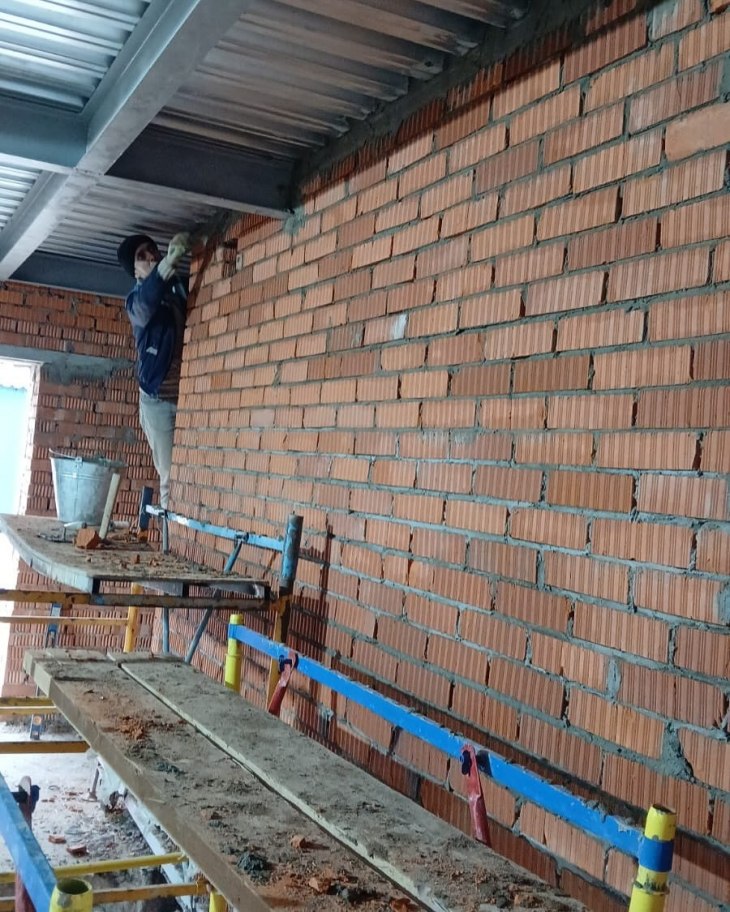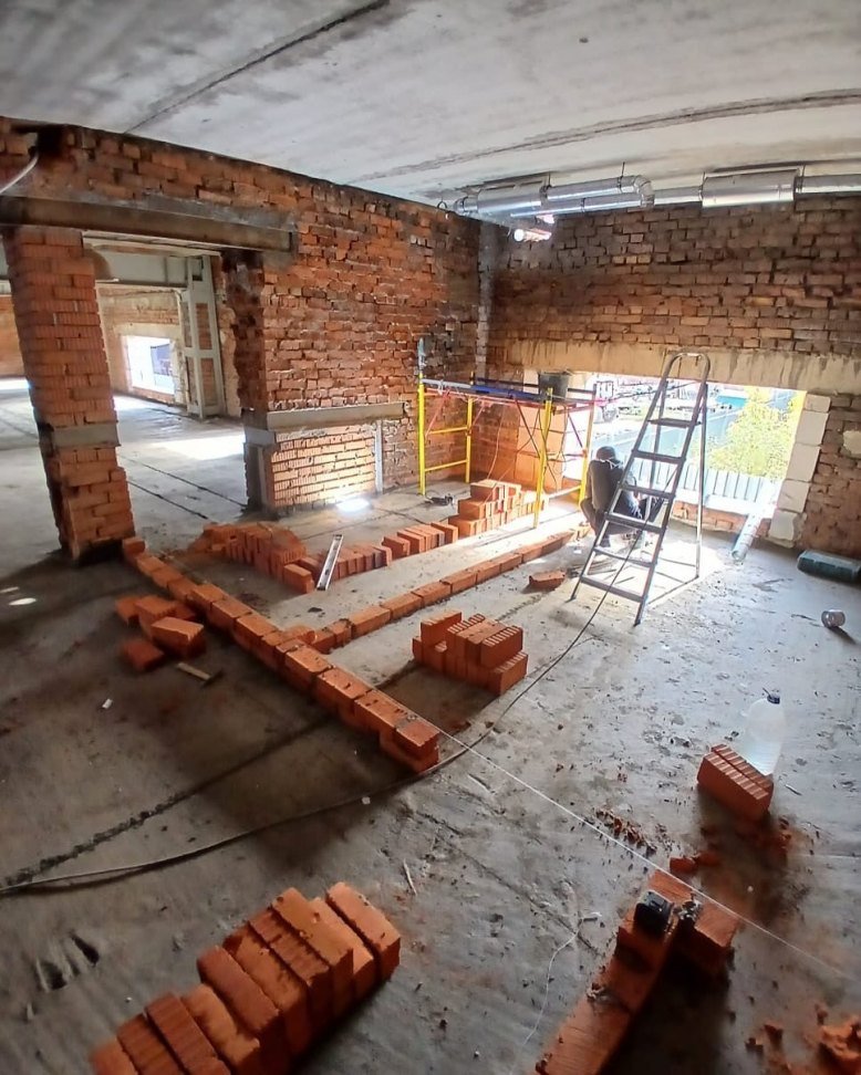 Реставрация старого зданий, монтаж кладки кирпича